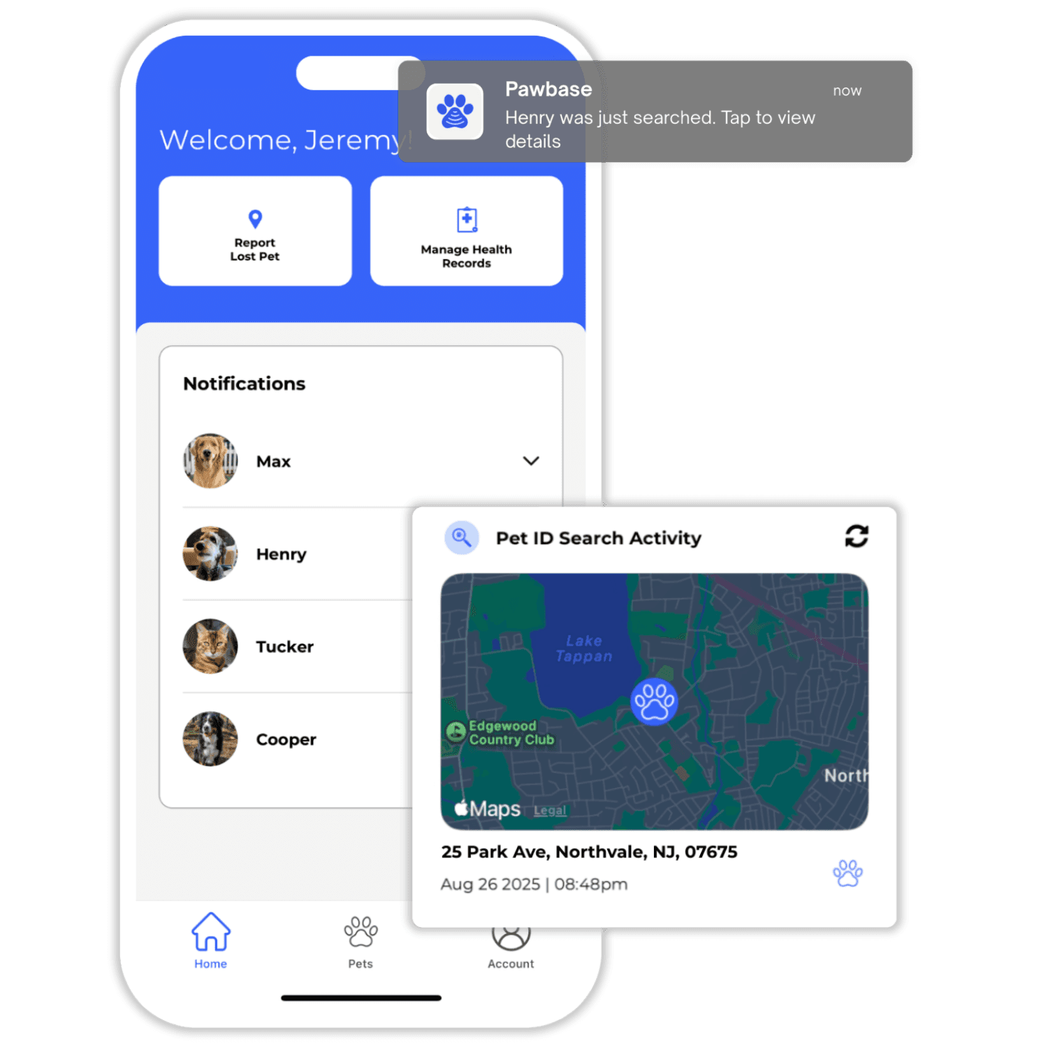 Finders can call or text you directly. Pawbase Premium members also receive instant scan alerts with the location details.